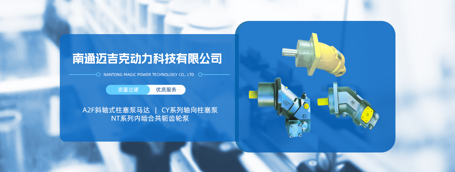 南通迈吉克动力科技有限公司,属于上海轩云液压机械有限公司旗下子公司,成立于2004年,是一家以研发、制造、销售液压油泵的专业生产厂家,公司产品包括A2F/A2FE/A2FM系列斜轴式柱塞泵/马达,NT系列直线共轭内啮合齿轮泵,全系列CY14-1B高压轴向柱塞泵,CY-Y系列油泵电机组。