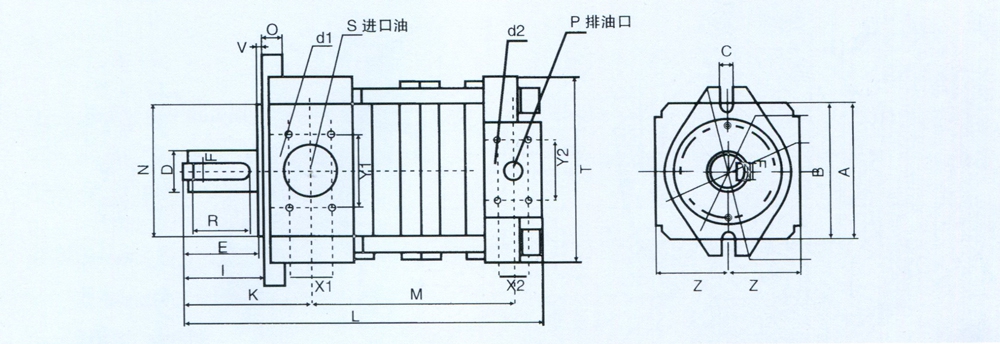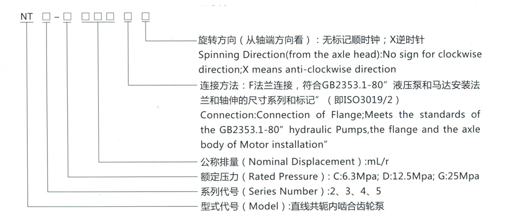 注:“NT泵轴伸符合GB2353。1-80液压泵和马达安装法兰和轴伸的尺寸系列和标记”(即Iso9309/2)