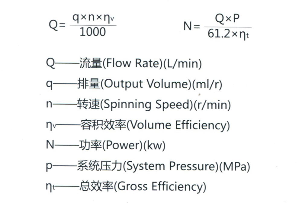 用户应根据液压系统实际工况(压力、流量)和转速,计算岀泵的排量,选择好型号即可算出泵需要的功率随后确定电机或其它的动力源。